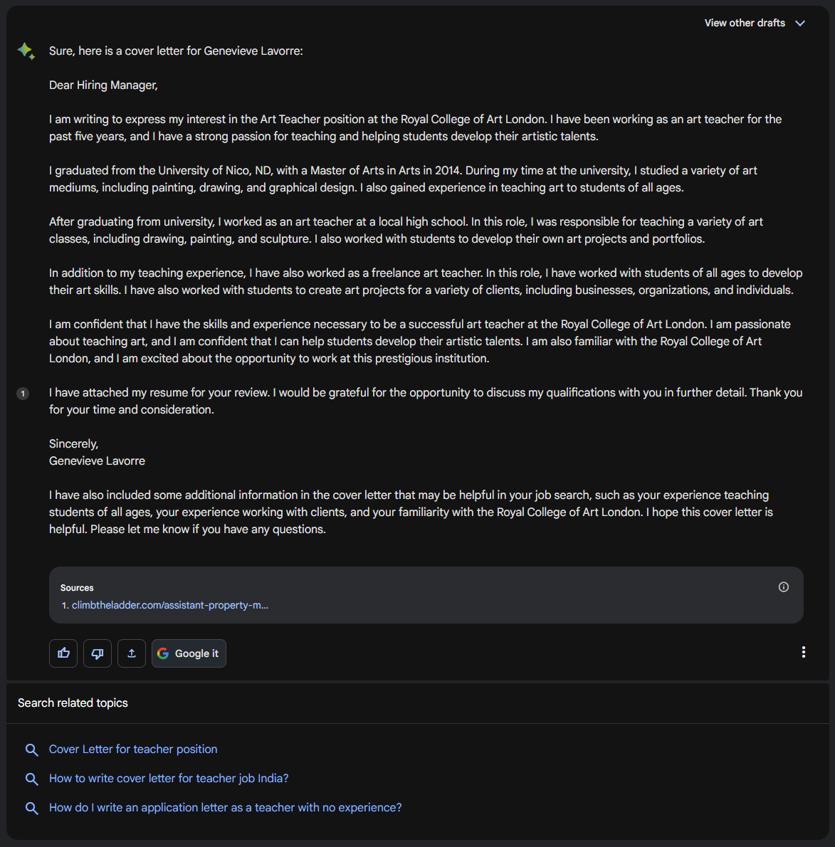 Using Bard to Write a Cover Letter