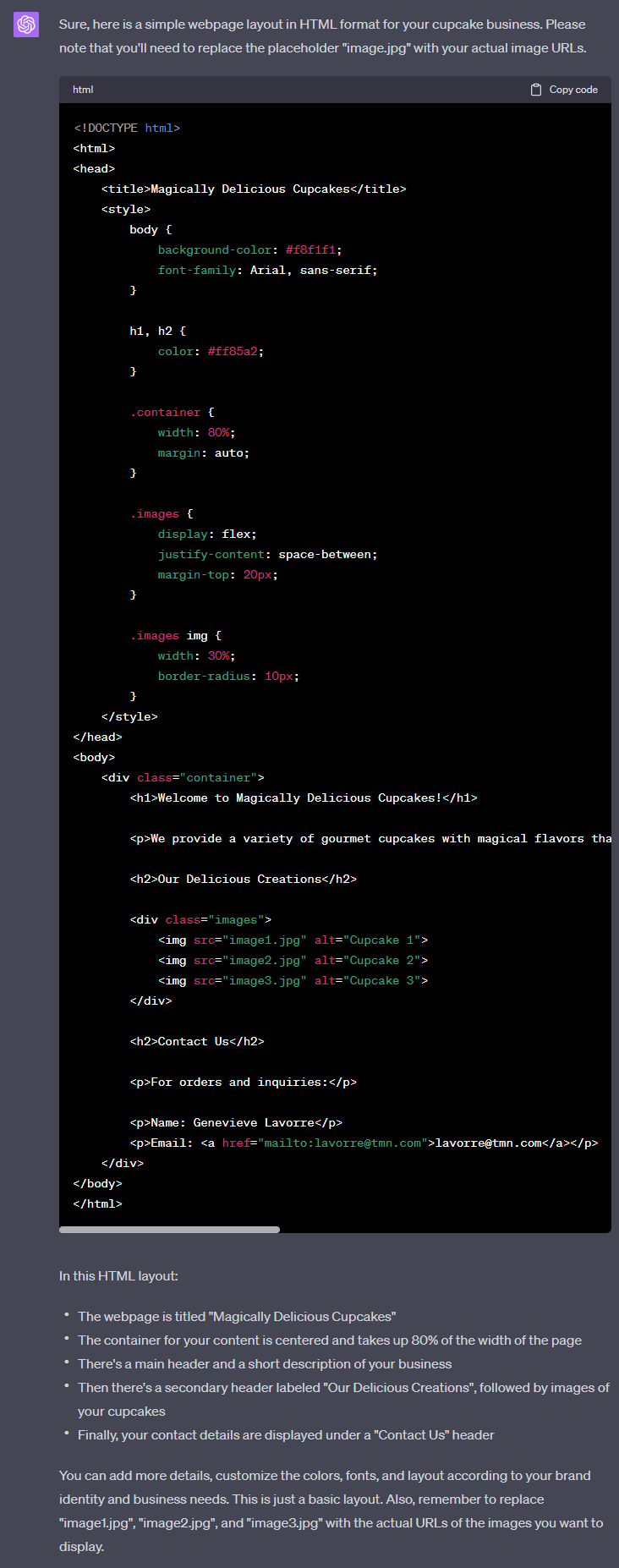 For our example, we will ask ChatGPT to create a simple webpage: