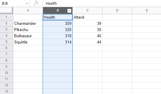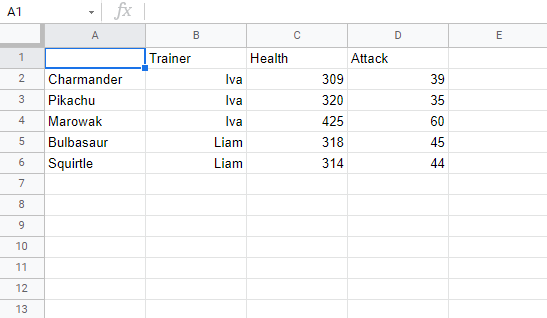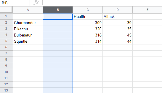 Next, we need to get some Pokemon trainers in there. Type or copy the following data in the new column B: