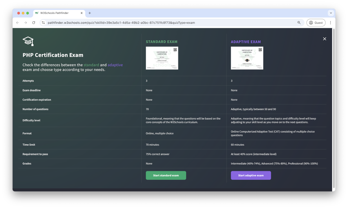 The PHP exam is a test that summarizes the W3Schools PHP syllabus.